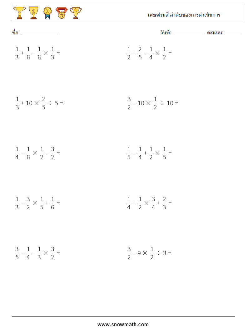 (10) เศษส่วนสี่ ลำดับของการดำเนินการ ใบงานคณิตศาสตร์ 12
