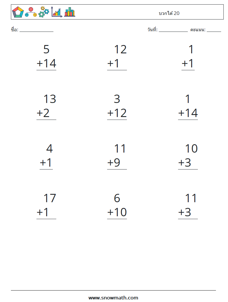 (12) บวกได้ 20 ใบงานคณิตศาสตร์ 12
