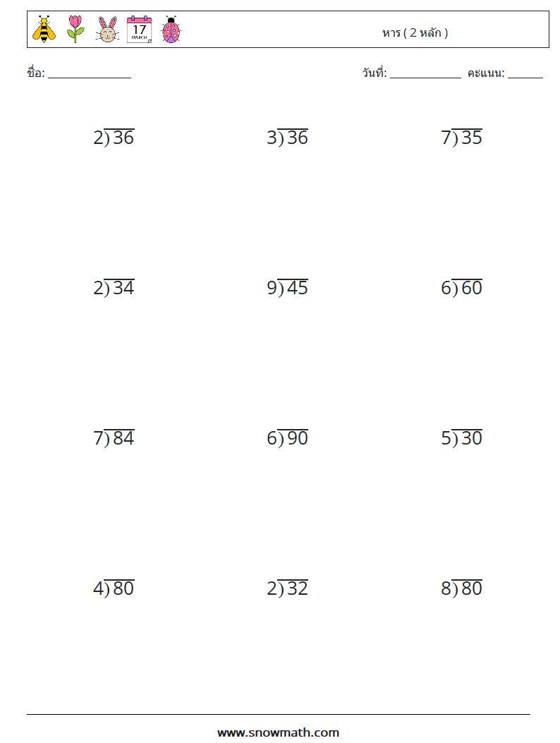 (12) หาร ( 2 หลัก ) ใบงานคณิตศาสตร์ 12