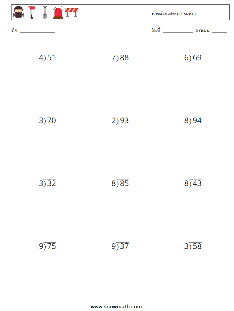 (12) หารด้วยเศษ ( 2 หลัก ) ใบงานคณิตศาสตร์ 8