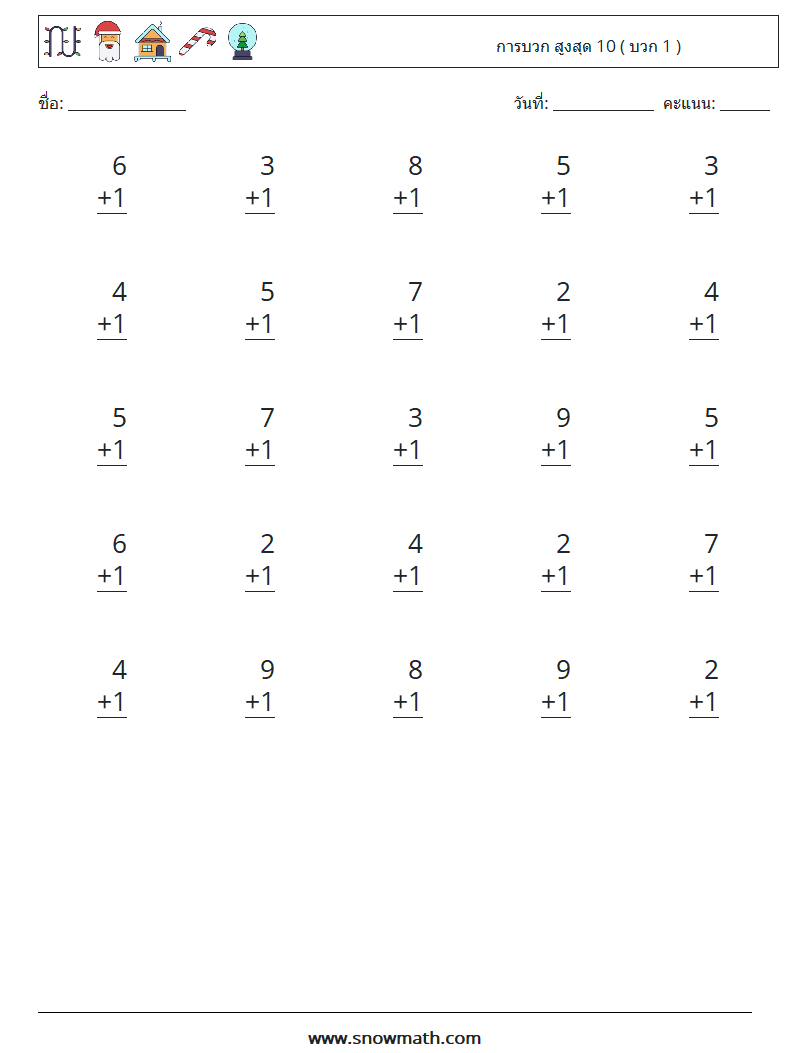 (25) การบวก สูงสุด 10 ( บวก 1 ) ใบงานคณิตศาสตร์ 5