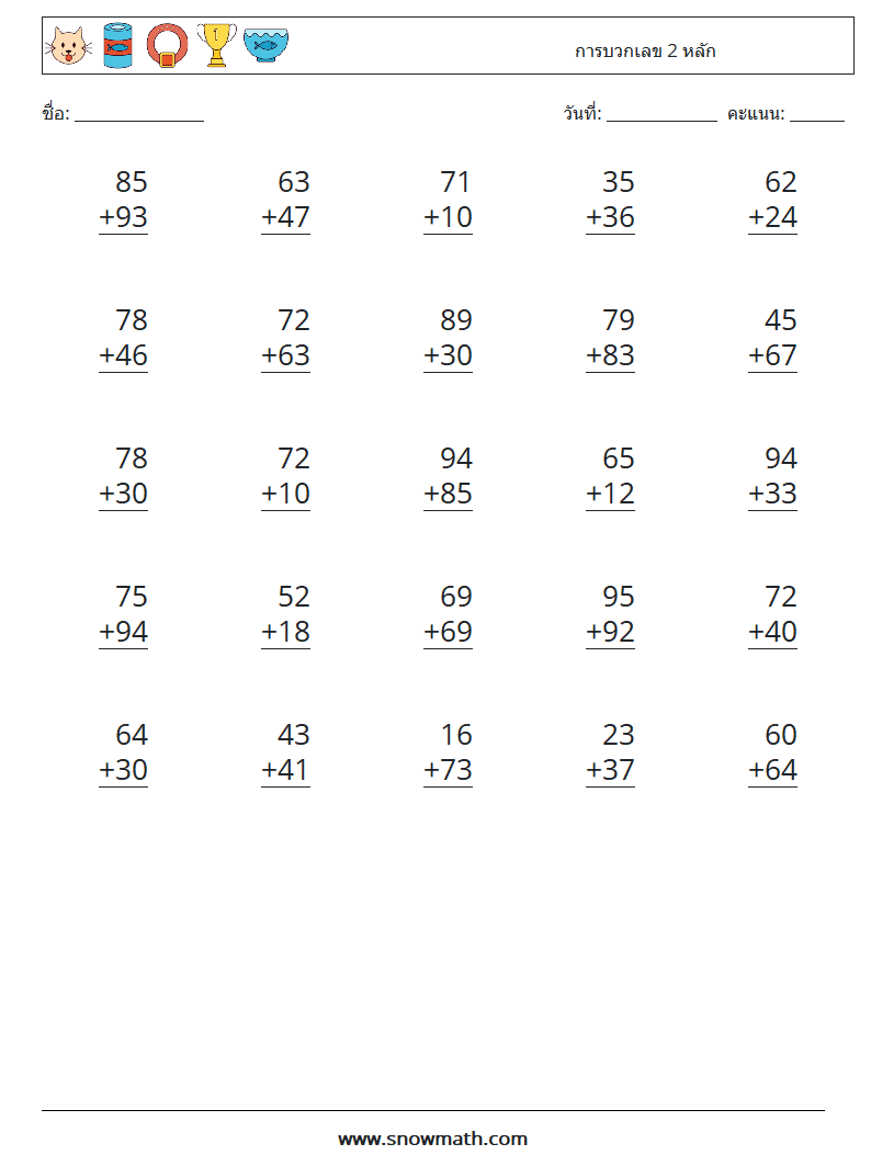 (25) การบวกเลข 2 หลัก ใบงานคณิตศาสตร์ 5