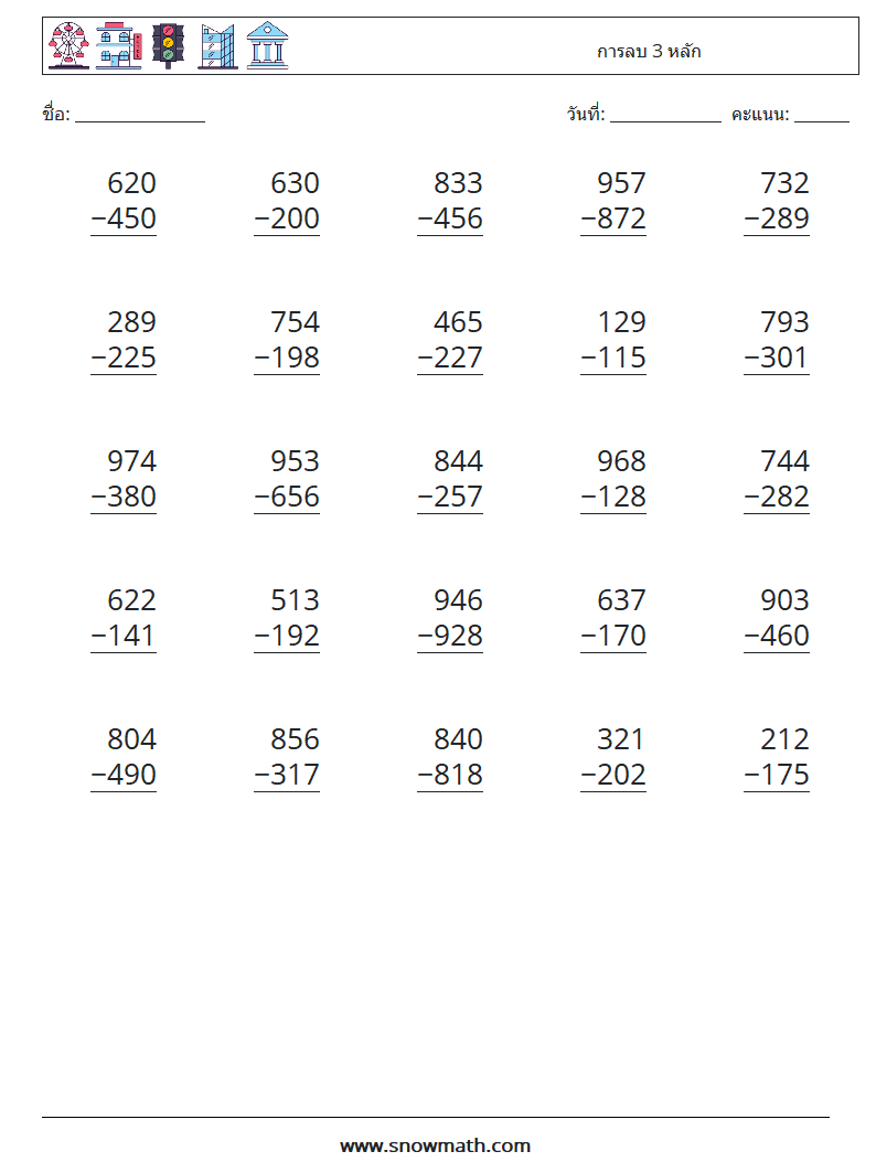 (25) การลบ 3 หลัก ใบงานคณิตศาสตร์ 5