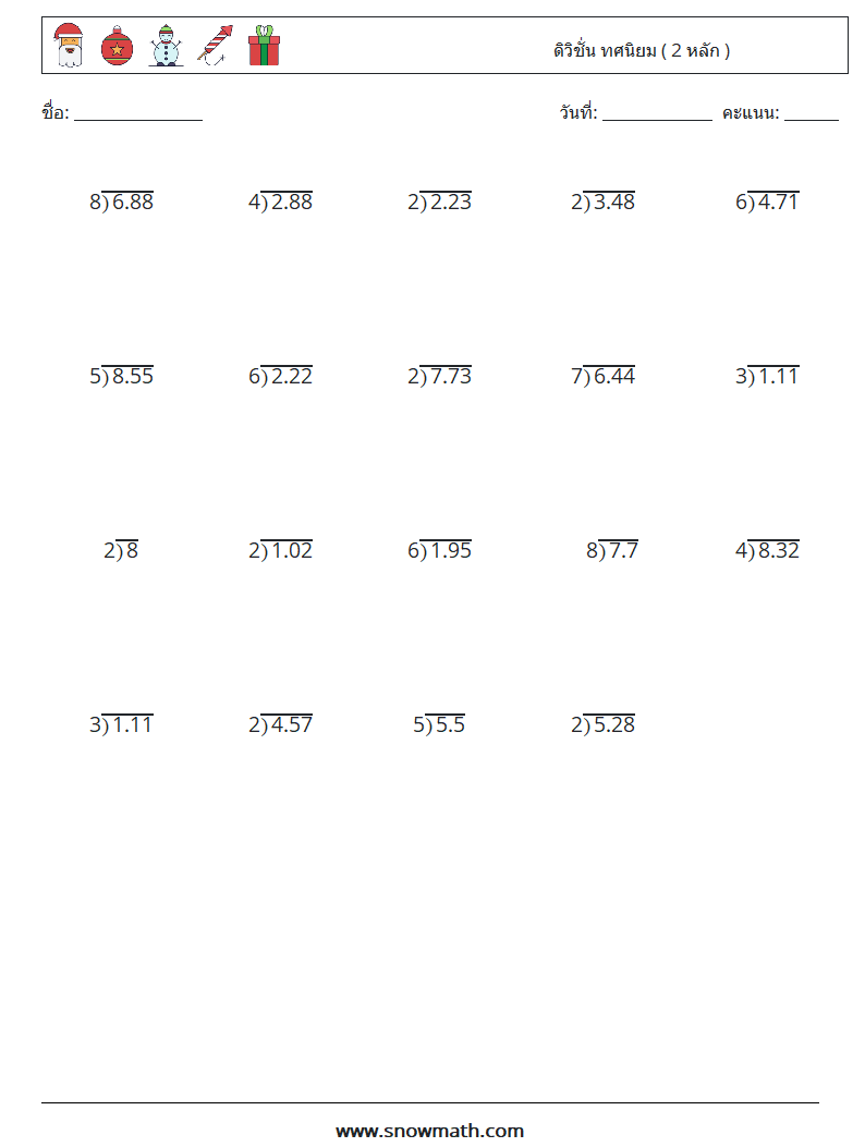 (25) ดิวิชั่น ทศนิยม ( 2 หลัก ) ใบงานคณิตศาสตร์ 16
