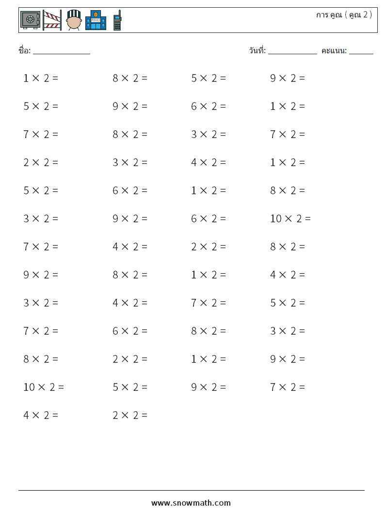 (50) การ คูณ ( คูณ 2 ) ใบงานคณิตศาสตร์ 2