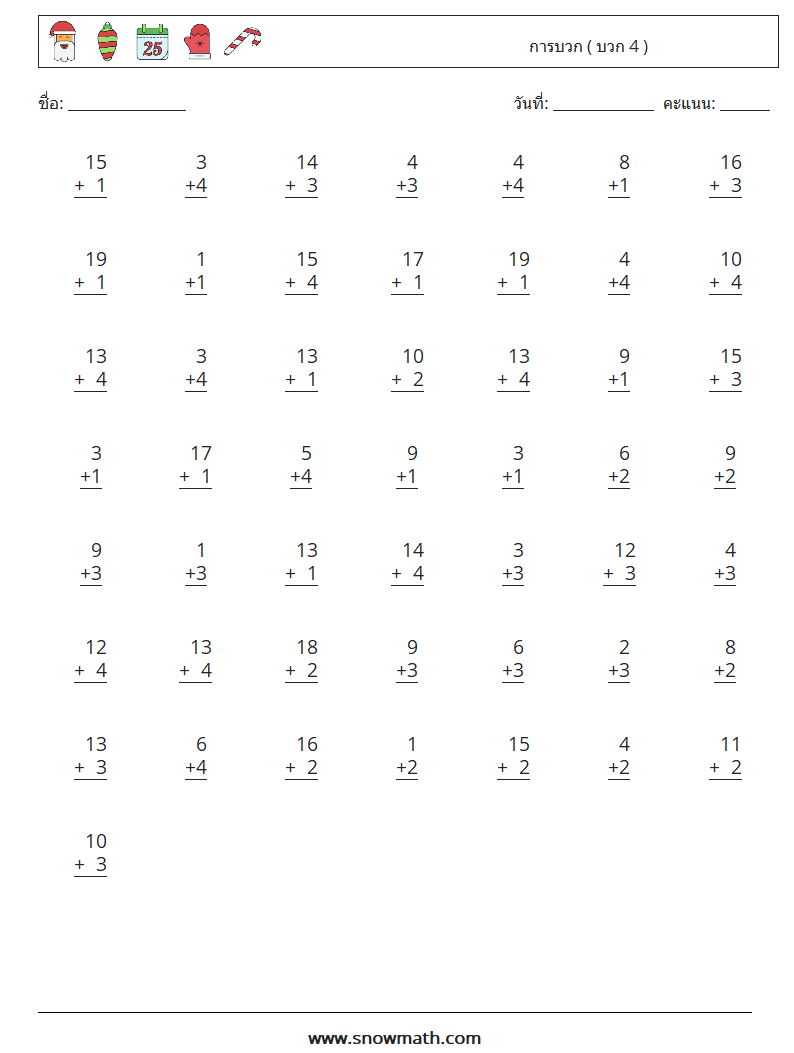 (50) การบวก ( บวก 4 )