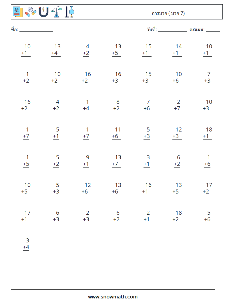 (50) การบวก ( บวก 7) ใบงานคณิตศาสตร์ 18