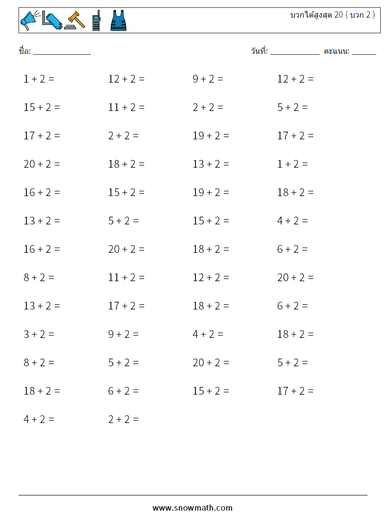 (50) บวกได้สูงสุด 20 ( บวก 2 ) ใบงานคณิตศาสตร์ 2
