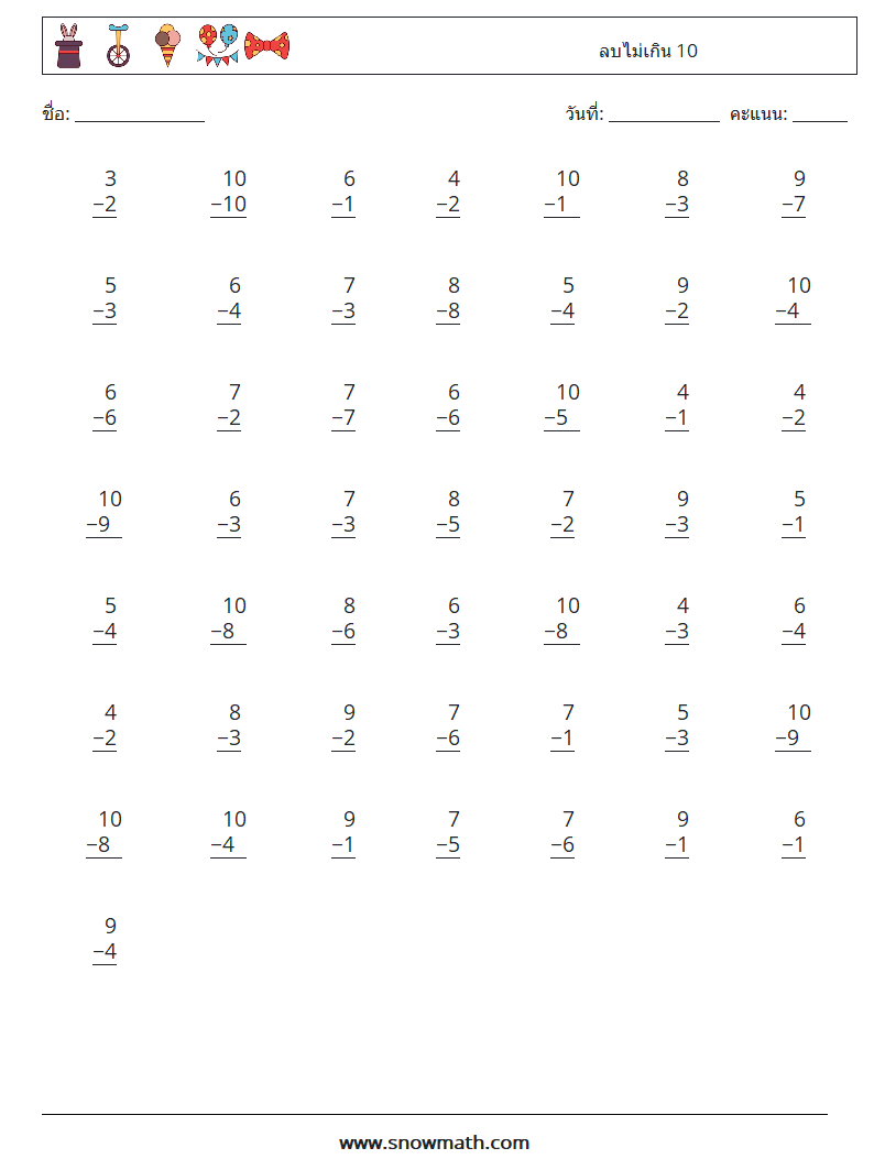 (50) ลบไม่เกิน 10 ใบงานคณิตศาสตร์ 9