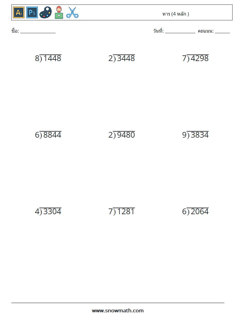 (9) หาร (4 หลัก ) ใบงานคณิตศาสตร์ 8