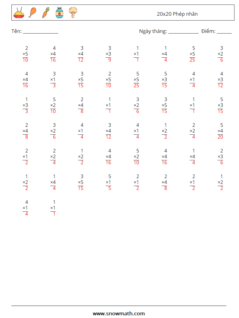 (50) 20x20 Phép nhân