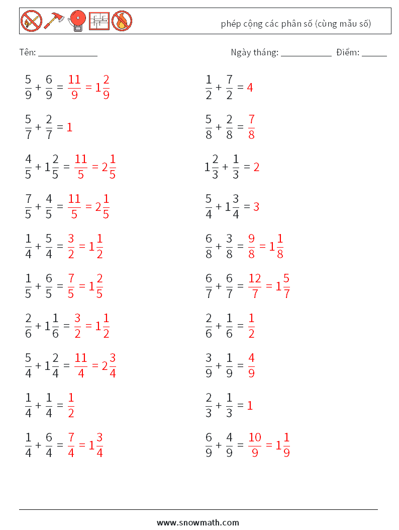 (20) phép cộng các phân số (cùng mẫu số)