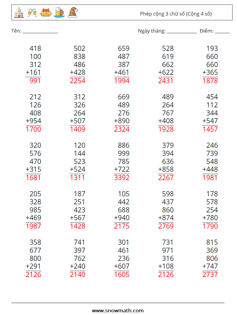 (25) Phép cộng 3 chữ số (Cộng 4 số)
