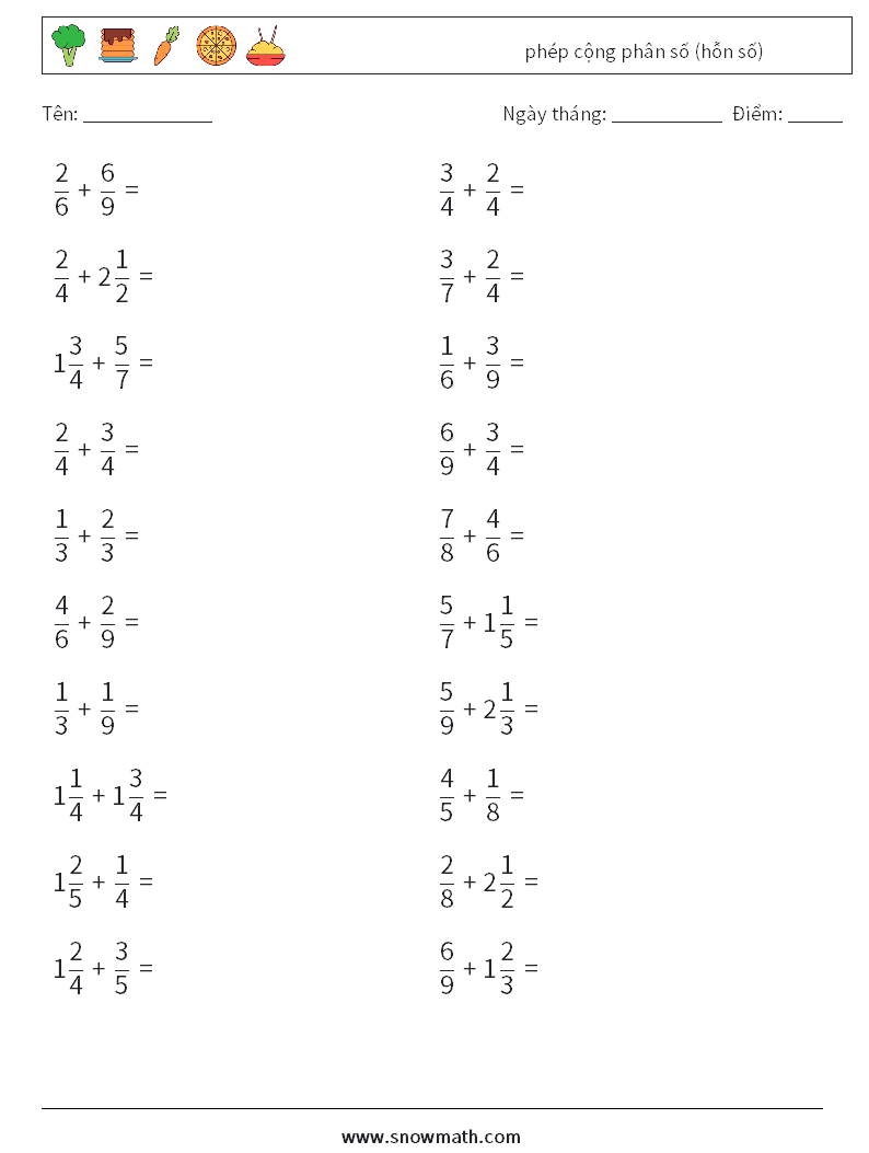 (20) phép cộng phân số (hỗn số)