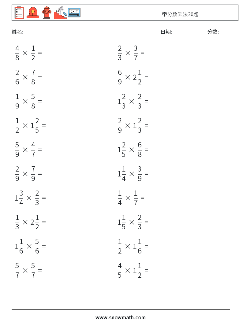 带分数乘法20题 数学练习题 8