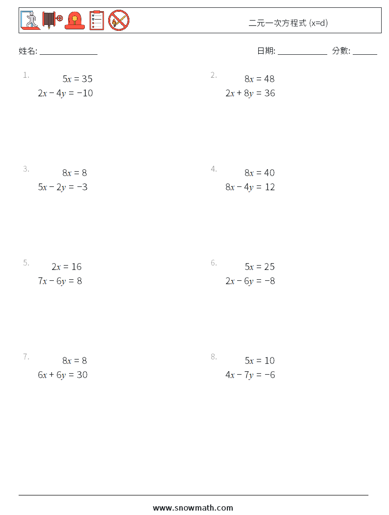 (x=d, ax+by=c) 線性代數代數方程組、二元一次方程式練習題